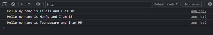 sayHello("Toonsquare", 99);