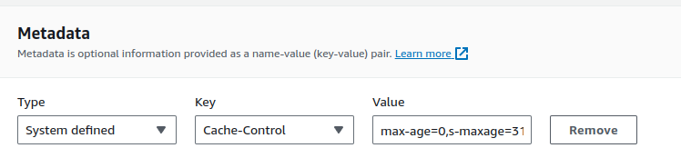 - s3에서 object를 선택 >> action >> edit metadata >> s-maxage,max-age 설정