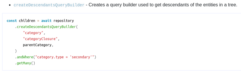 createDescendantsQueryBuilder. This post will let you know a thing that you need to care for usingcreateDescendantsQueryBuilder.